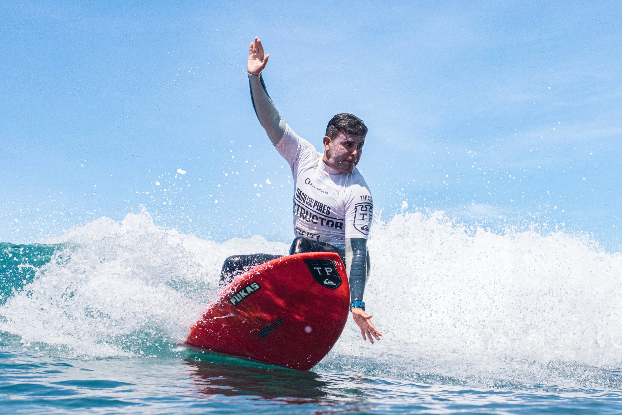 Tiago Pires is a pioneer of Portuguese surfing and the first Portuguese athlete to compete on the World Championship Tour. After nearly a decade at the highest level, he now shares his experience through a surf school built on quality coaching, ocean knowledge, and a deep passion for the sport.